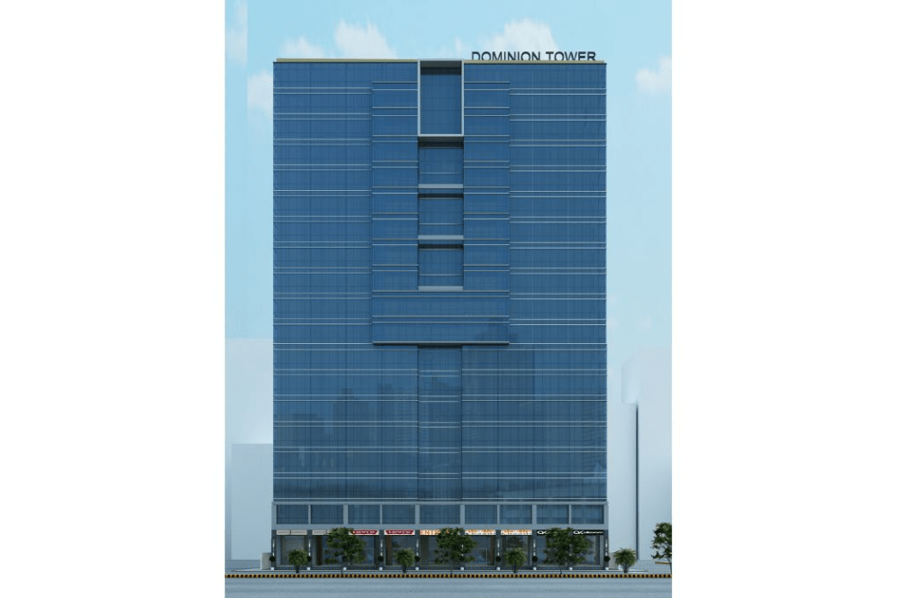 “Dominion-2” is an 18-story commercial building located on Main Jinnah Avenue in Bahria Town, Karachi. Designed on a 60 ft x 160 ft plot, it features retail spaces at the lower levels and office floors above, ensuring functionality and commercial appeal.